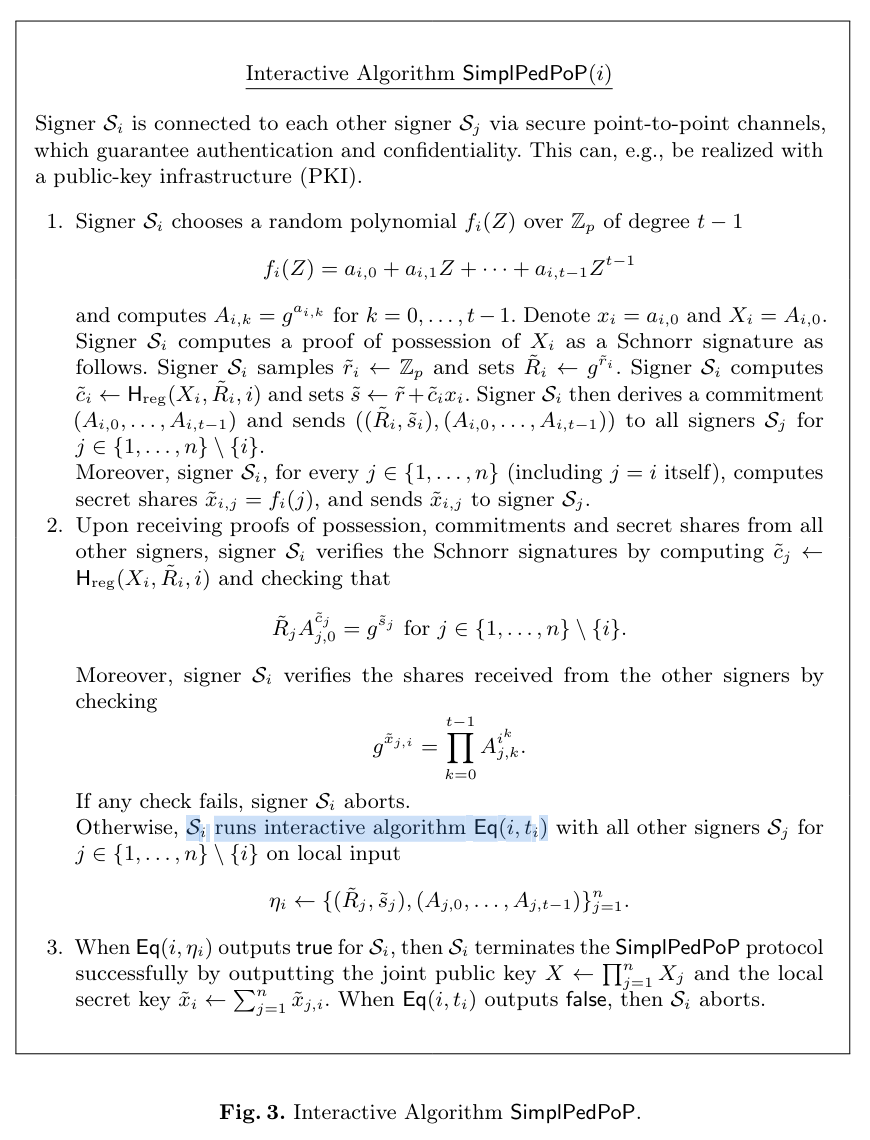 - Assumption: everyone has a correct copy of every other signer's \(\mathsf{staticpub}\).