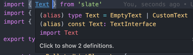 > = unknown extends CustomTypes[K] ? B : CustomTypes[K]- 在我們將 'Text' 與 BaseText 傳入 ExtendedType 以後,它首先會確認 'Text' 是否存在於 ExtendableTypes 裡。