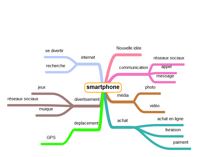 une carte mentale de toutes les fonctions d’un smartphone récent
