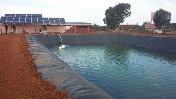 Le système d'irrigation commence dans un puits ou l'eau est acheminée jusqu'à la surface par l'intermédiaire d'une pompe immergée.La pompe fonctionne avec de l'electicité par un panneau photovoltaique .