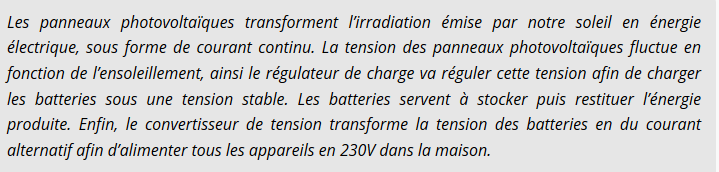 A partir de l'extrait de catalogue, justifier la fonction du régulateur de charge