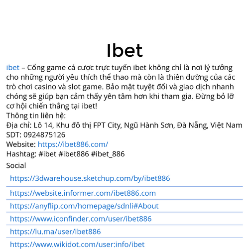 ibet – Cổng game cá cược trực tuyến ibet không chỉ là nơi lý tưởng cho những người yêu thích thể thao mà còn là thiên đường của các trò chơi casino và slot game. Bảo mật tuyệt đối và giao dịch nhanh chóng sẽ giúp bạn cảm thấy yên tâm hơn khi tham gia. Đừng bỏ lỡ cơ hội chiến thắng tại ibet! Thông tin liên hệ: Địa chỉ: Lô 14, Khu đô thị FPT City, Ngũ Hành Sơn, Đà Nẵng, Việt Nam SDT: 0924875126 Website: https://ibet886.com/ Hashtag: #ibet #ibet886 #ibet_886