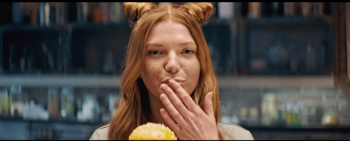 Plano medio de nuestra Rachel que termina de entregar orgullosa su último pedido a uno de sus amigos y se dirige a la barra con la satisfacción del trabajo bien hecho en el rostro.