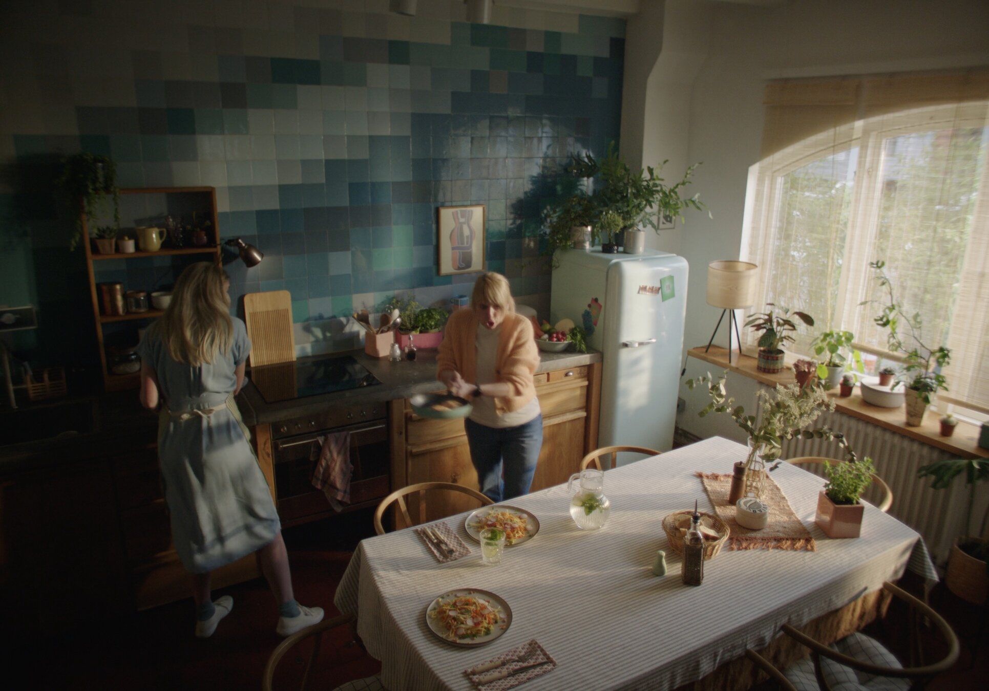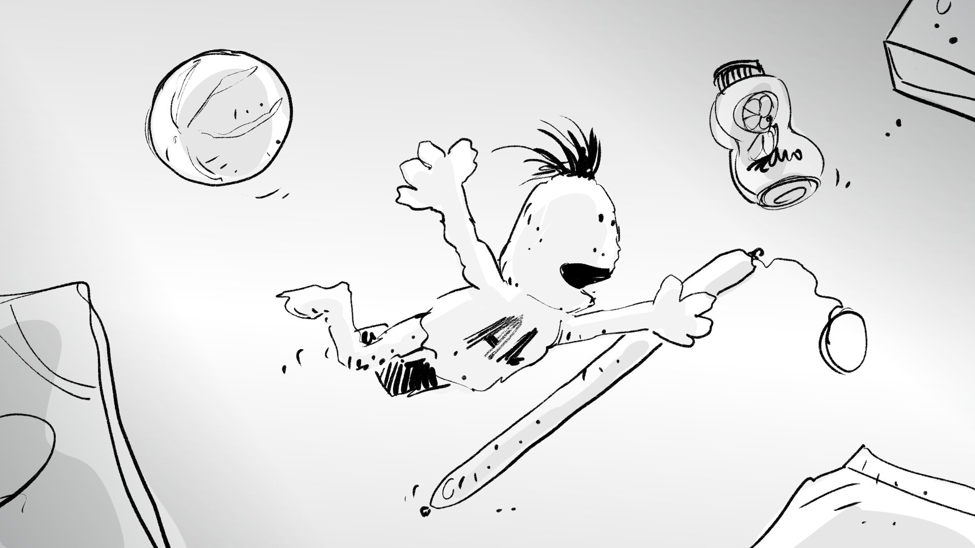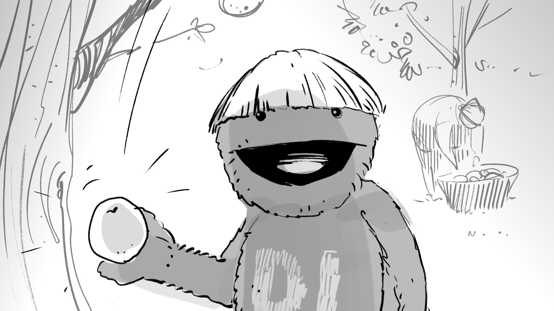 Toda la parte de AL flotando la rodaremos en croma, con una combinación de muppet, Bunraku y guantes. Los alimentos serán un 3D hiperrealista (y ultra apetitoso) que se integrará en postproducción con las imágenes del rodaje de plató de AL. Trabajaremos con cariño el acabado de los alimentos hasta que nos hagan salivar.