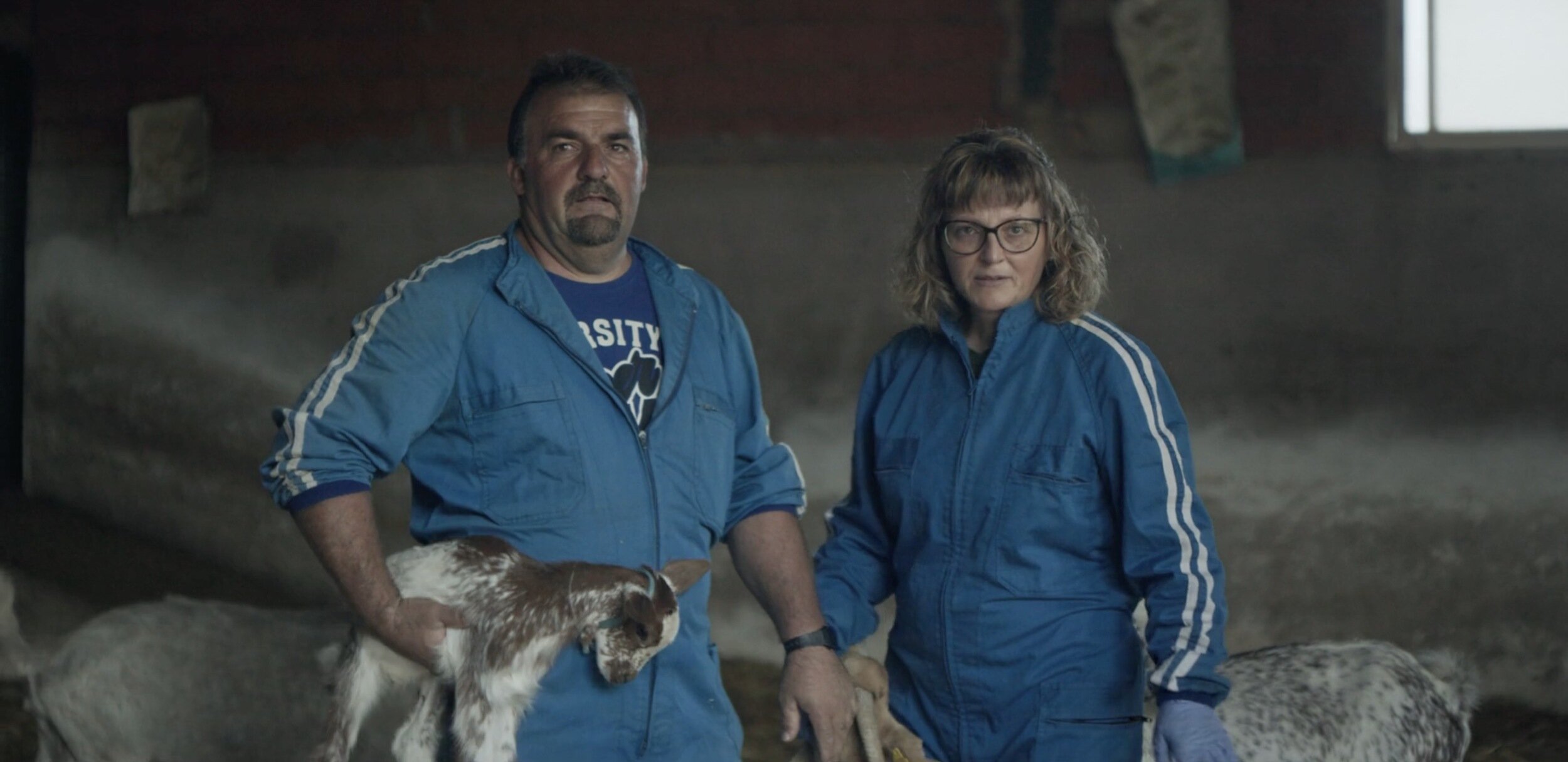Cortamos a un plano en el que vemos a Aldi hablando en un tres cuartos trasero mientras observa trabajar al payés, que sigue colocando su producto en la nevera. Está sentada sobre una montaña de tomates con una libretista en la que va tomando notas..