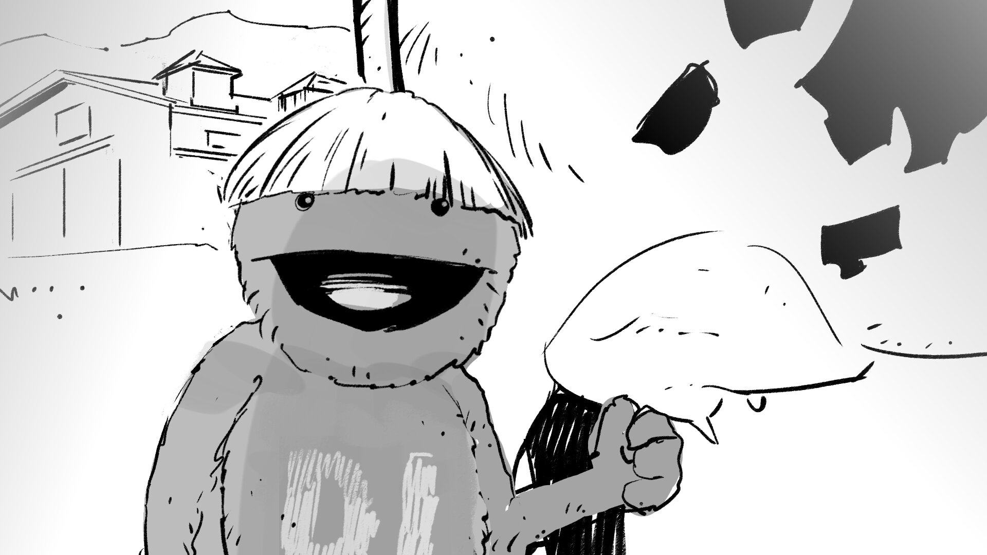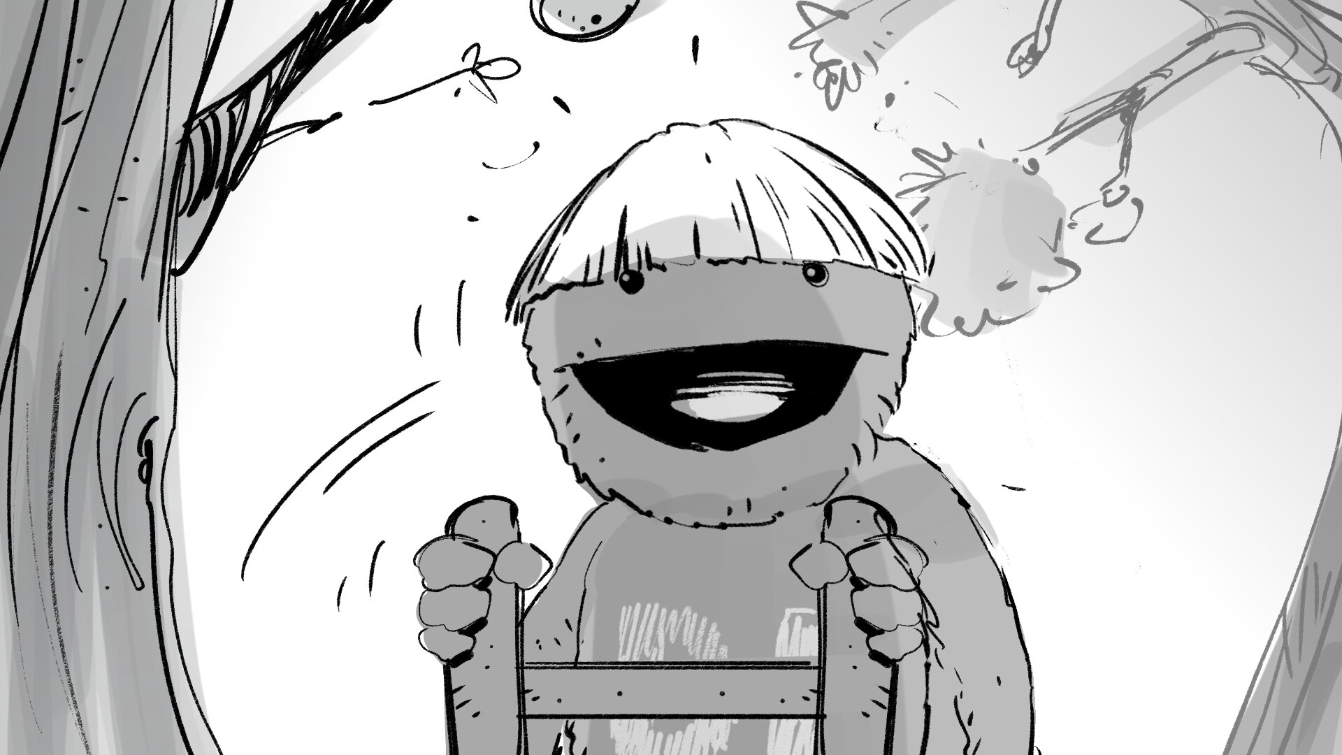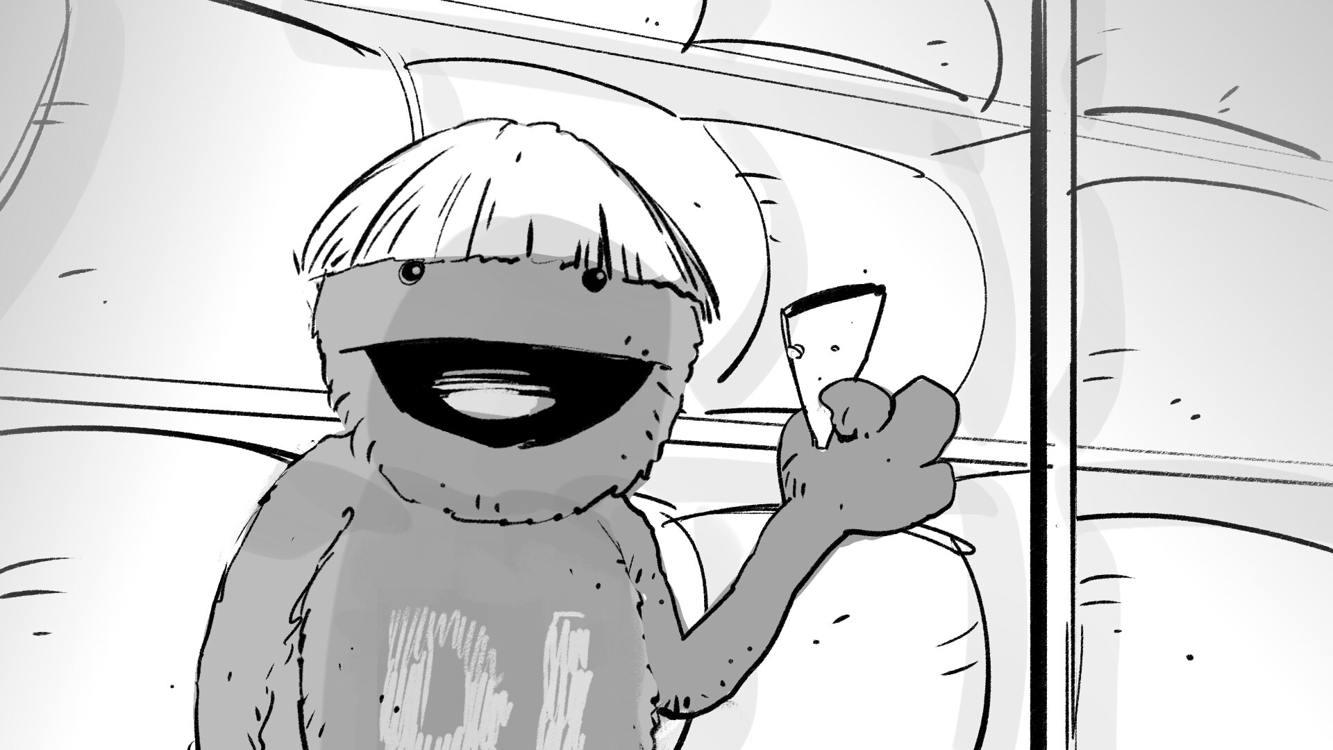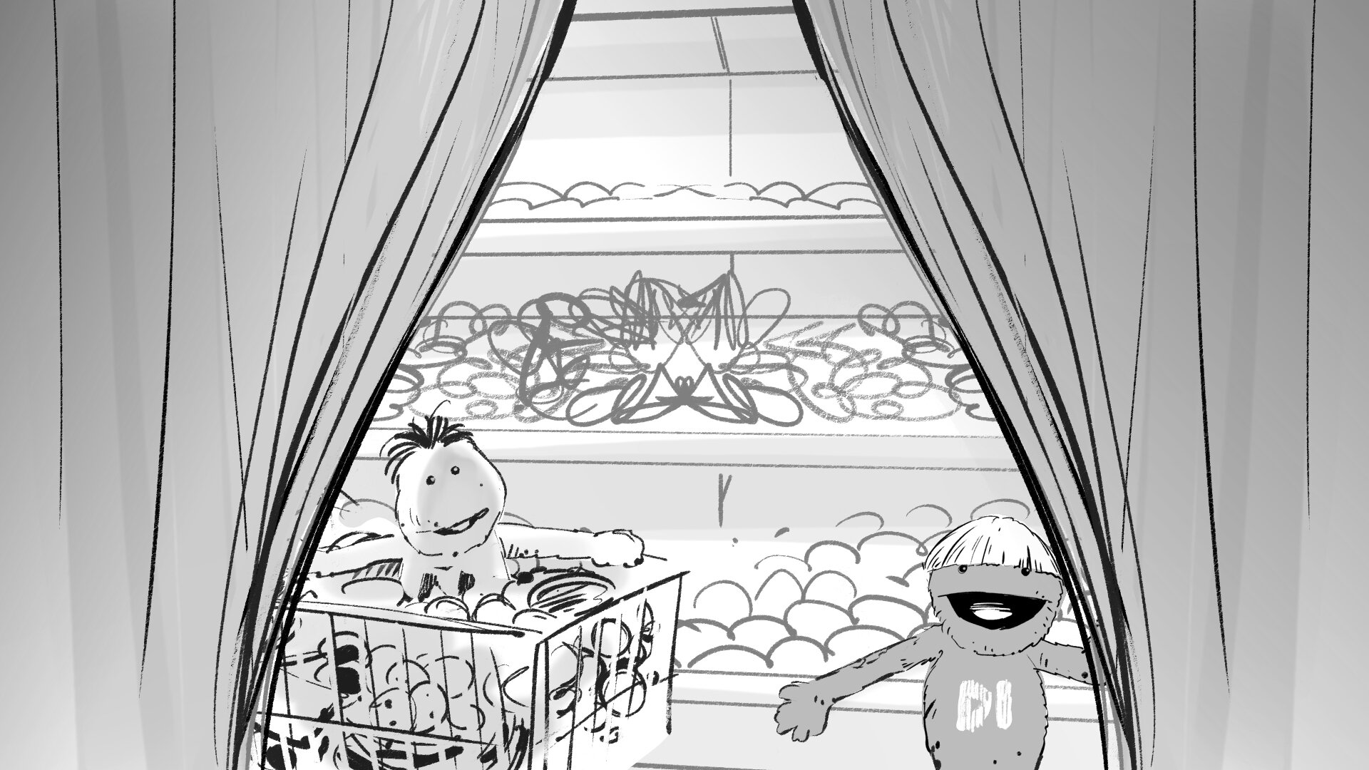 Molaría crear un choque de manos mítico entre la pareja de amiguis, una coreografía simpática. Haremos pruebas con los marionetistas previas a rodaje. Y si hay algo que nos gusta mucho a todos, lo podemos incorporar al repertorio.