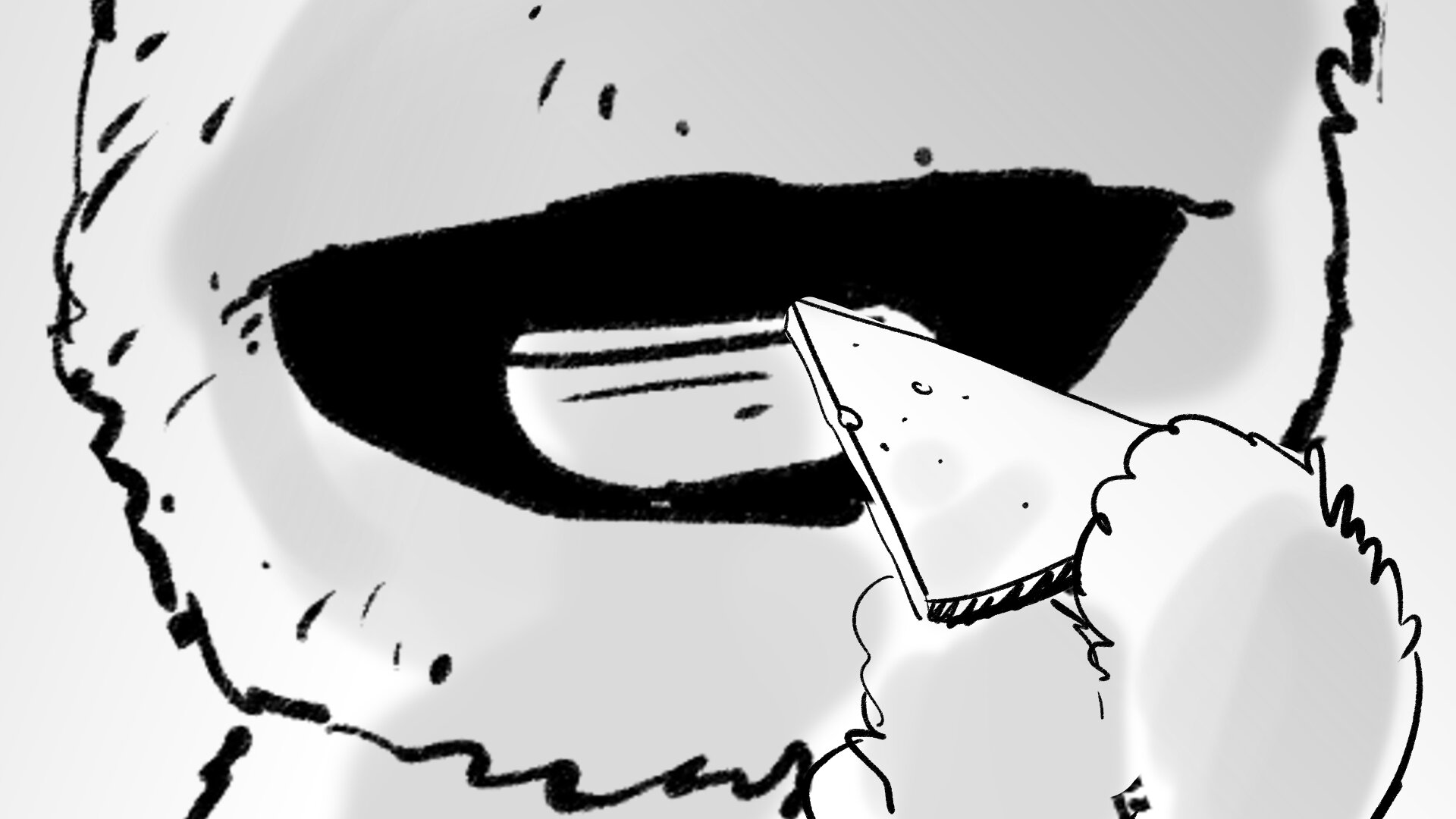 Para el momento de la cata de producto en que AL descubre un queso nuevo que lo maravilla, la idea es utilizar un push in a los ojos del personaje que refuerce ese instante de descubrimiento del sabor. Y al acercarnos veremos cómo en los ojos negros de AL aparece escrita la palabra SÍ, el veredicto de AL sobre el queso.