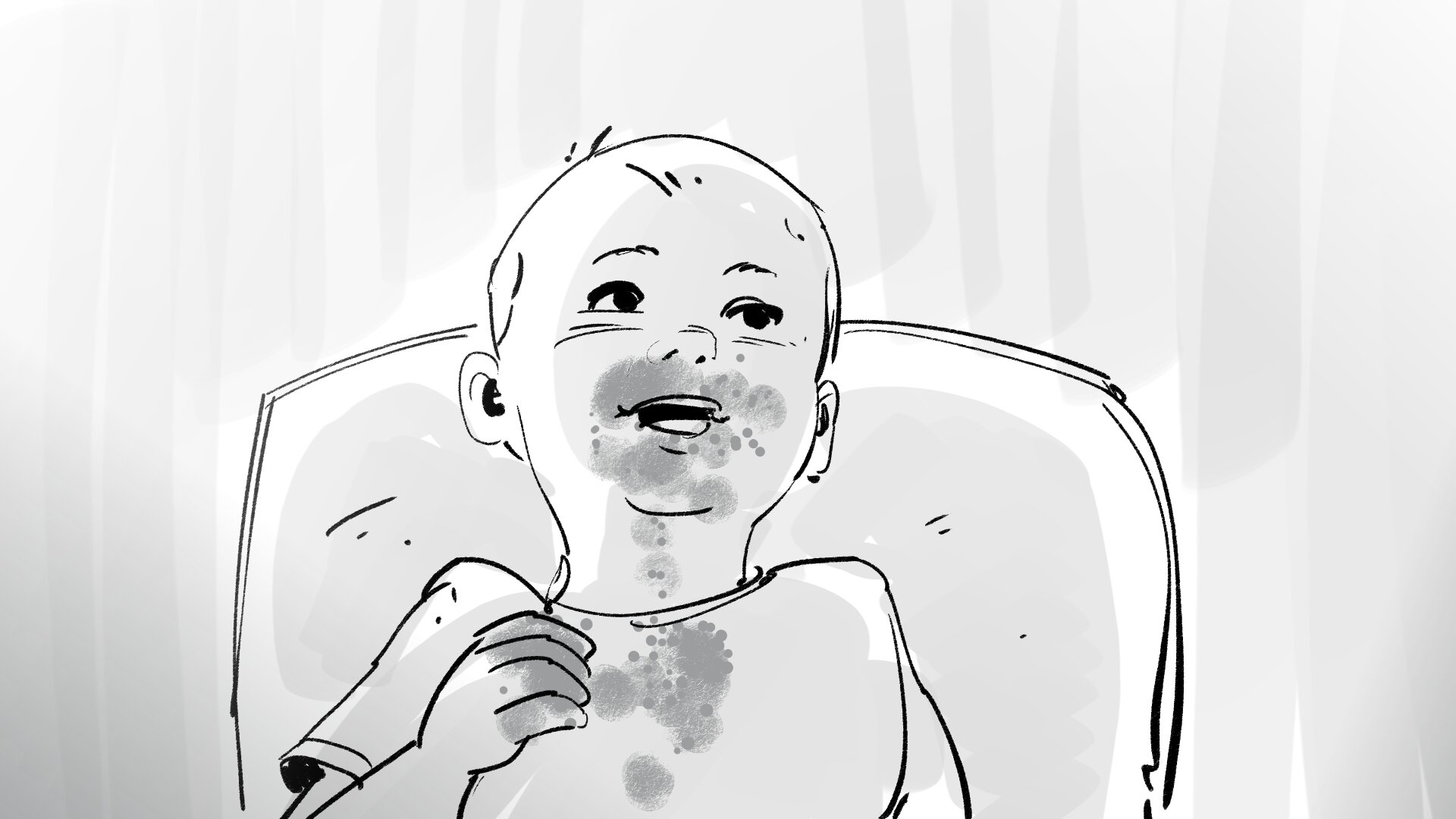 Y cortamos a un plano subjetivo del bebé, que observa como Al le pone el anmedio de Al y DI que es u