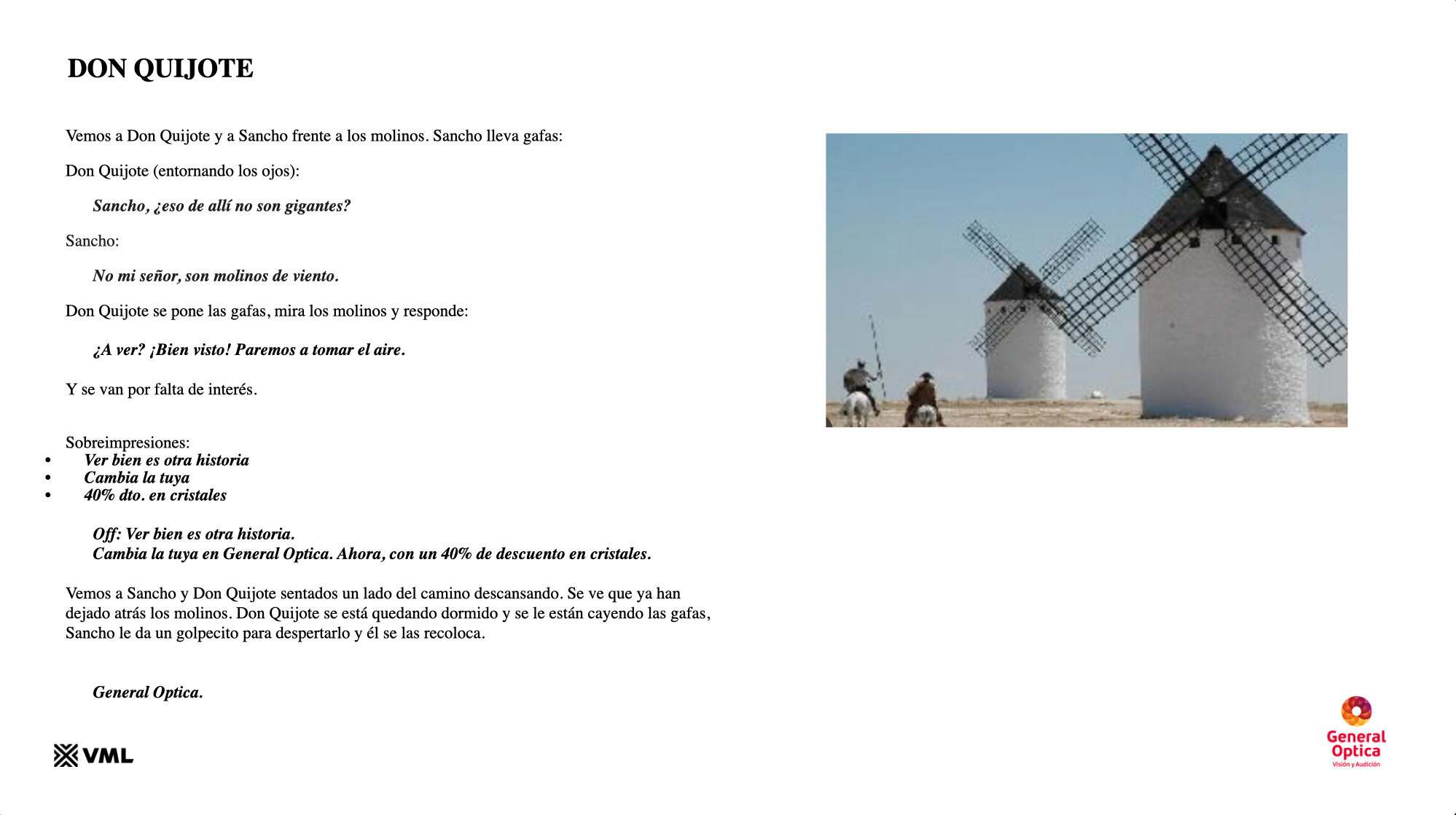 Don Quijote se pone las gafas, mira los molinos y responde: