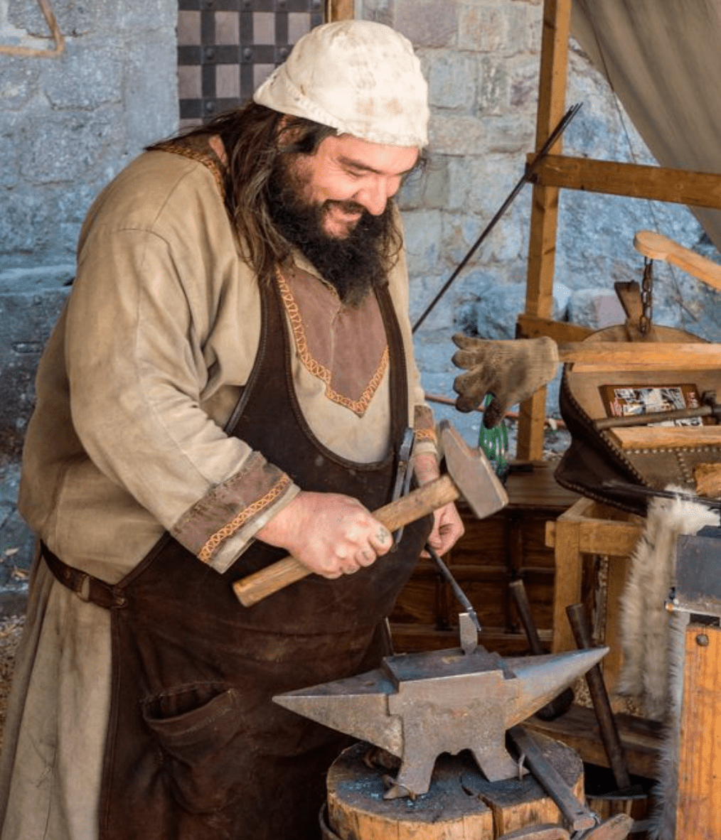 Vestimenta típica de un albañil Toscano del siglo XII. Prendas funcionales, resistentes y muy sencillas.