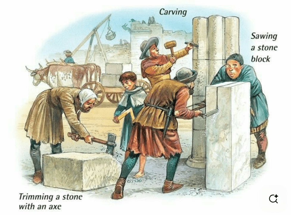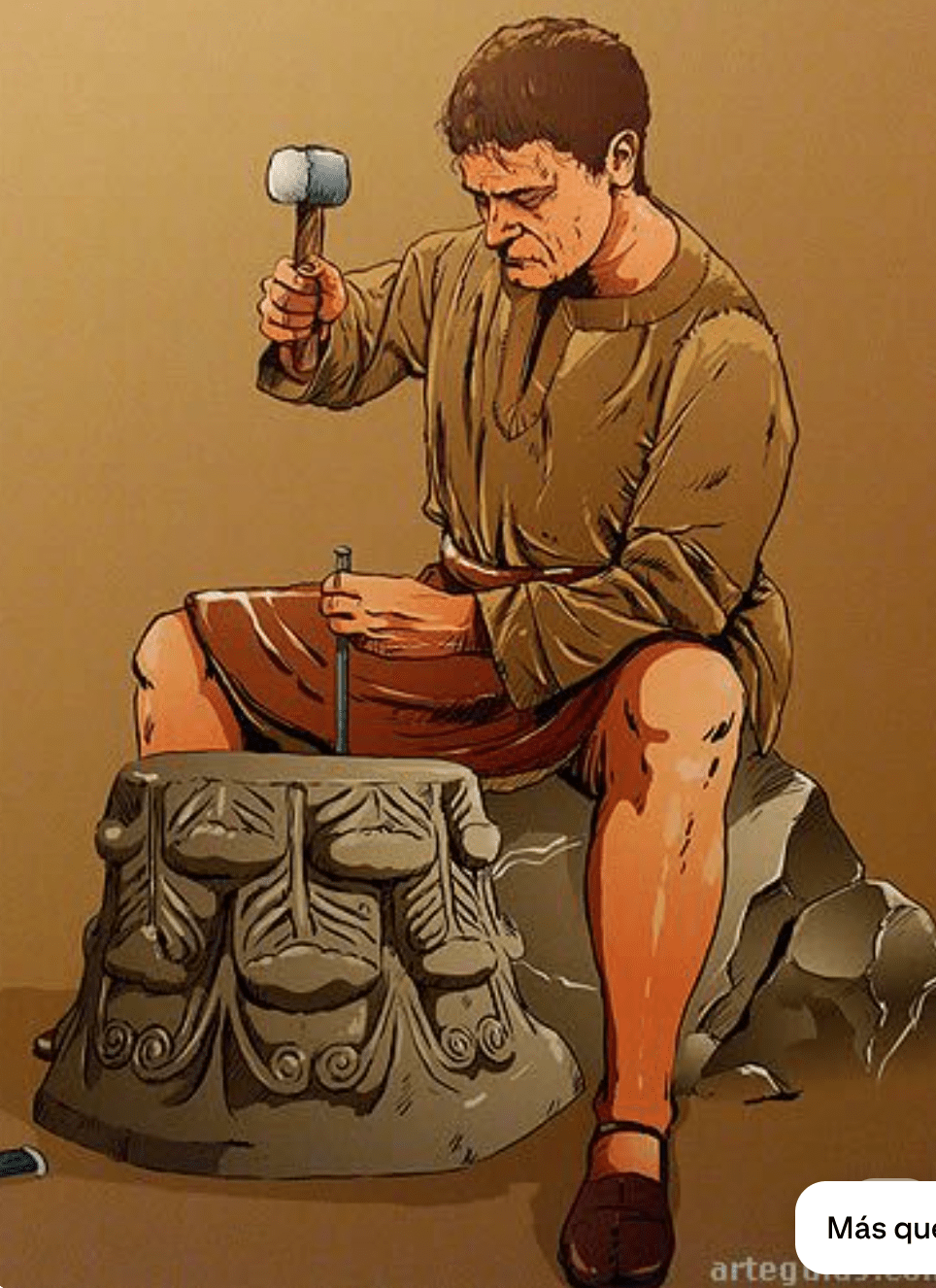 De fondo podría molar también un tío grandullón picando piedra. Y alguien que pasa empujando una carretilla de madera o transportando una escalera.