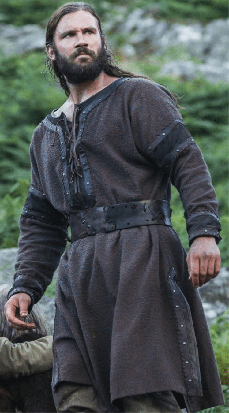 Túnica larga o “cotta” de lana fina. Lana peinada o lino teñido de buena calidad. Con bordado sencillo en el cuello o mangas. Colores posibles: verde oliva, azul oscuro, burdeos.