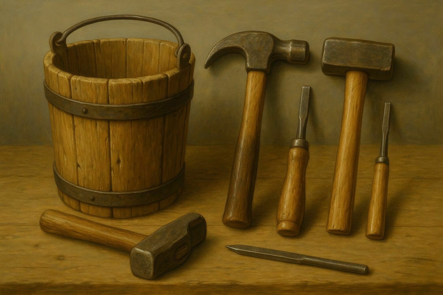 Cinturón de trabajo De cuerda o cuero sin adornos. Servía para colgar herramientas (cincel, cuerda, martillo pequeño, bolsa de clavos o tiza).