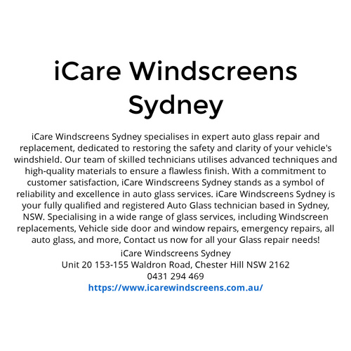 https://www.icarewindscreens.com.au/ iCare Windscreens Sydney specialises in expert auto glass repair and replacement, dedicated to restoring the safety & clarity of your vehicle's windshield.