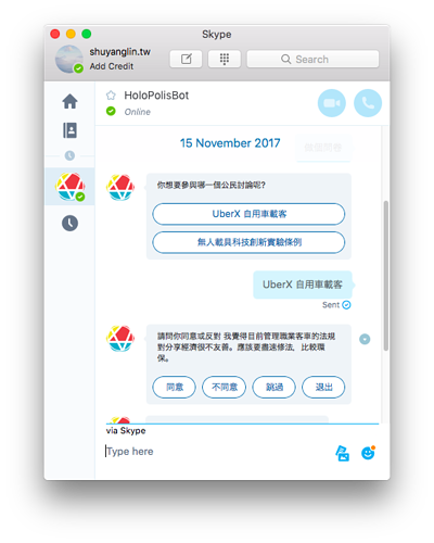 Holopolis bot allows always available participation. It packages vTaiwan as a contact you can add friend with and share your opinions on cases under discussion.