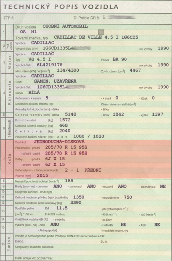 technické údaje k vozidlu,