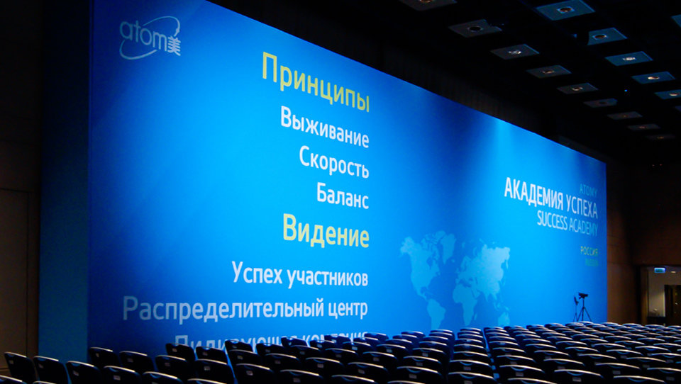 Масштабные конференции часто нуждаются именно в длинном, едином прессволле.