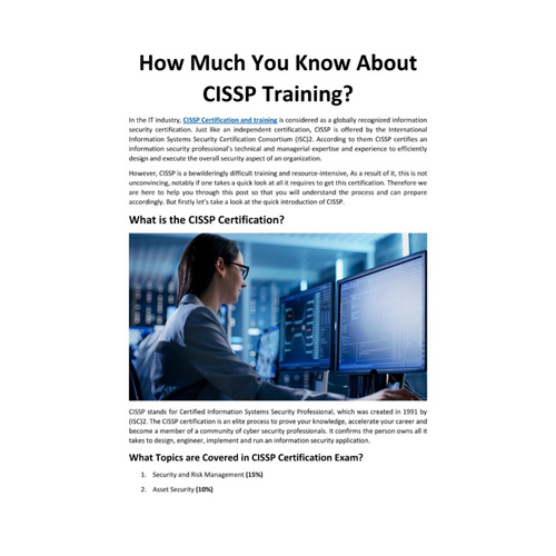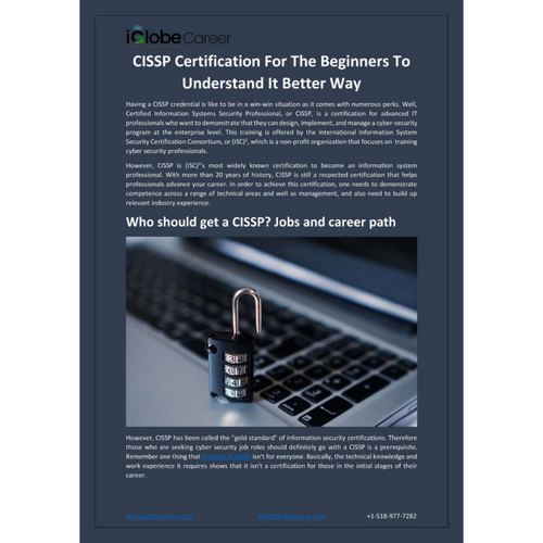Check out the document and know the significance and importance of CISSP Certification for the cyber security aspirants. Who should get a CISSP? Knowledge about CISSP Domains, Requirements, Study materials, CISSP Certification cost and many other queries has been answered in this. If StillHaving any other query and want to enroll for CISSP Certification Training Course, Do connect with iGlobe Career and get enrolled at https://www.iglobecareer.com/course/cissp-training/