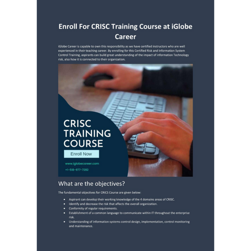 iGlobe Career is capable to own this responsibility as we have certified instructors who are well experienced in their teaching career. By enrolling for this Certified Risk and Information System Control Training, aspirants can build great understanding of the impact of information Technology risk, also how it is connected to their organization. To Enroll, reach at https://www.iglobecareer.com/course/crisc-training/ or call/whatsapp at +1-518-977-7282.
