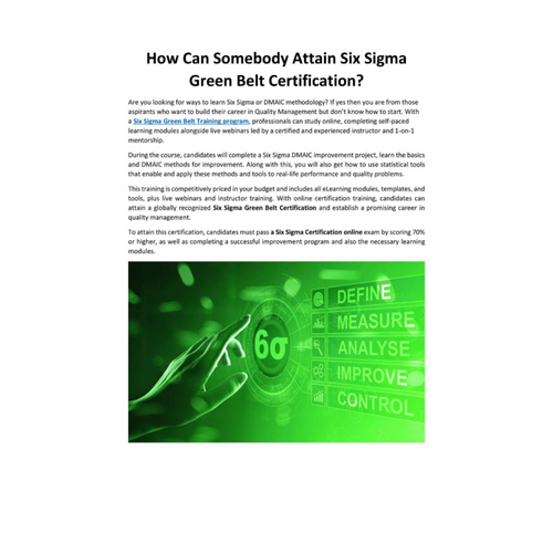 Read the document and know How Can Somebody Attain Six Sigma Green Belt Certification. If the above information is enough for you, you can probably visit the website of iGlobe Career. On the website, you will get plenty of blogs and articles related to the Six Sigma Certification Exam. Visit now and enroll for Six Sigma Green Belt Certification Training Course. Read more at https://www.iglobecareer.com/course/six-sigma-green-belt-training/