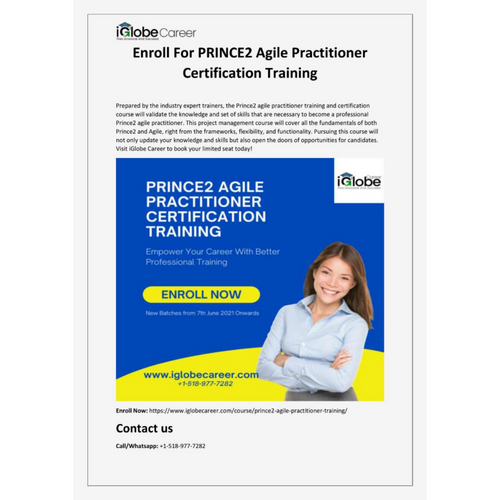 Prepared by the industry expert trainers, the Prince2 agile practitioner training and certification course will validate the knowledge and set of skills that are necessary to become a professional Prince2 agile practitioner. This project manageement course will cover all the fundamentals of both Prince2 and Agile, right from the frameworks, flexibility, and functionality. Pursuing this course will not only update your knowledge and skills but also open the doors of opportunities for candidates. Visit iGlobe Career to book your limited seat today! Enroll Now: https://www.iglobecareer.com/course/prince2-agile-practitioner-training/ Contact us Call/Whatsapp:+1-518-977-7282