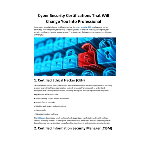 Check out the document and know which Cyber Security Certifications can Change You Into Professional. What cyber security course will give you career boost. Enroll for cyber security courses via professional and certified instructors of iGlobe Career Now! Reach now at https://www.iglobecareer.com/course-category/cyber-security/
