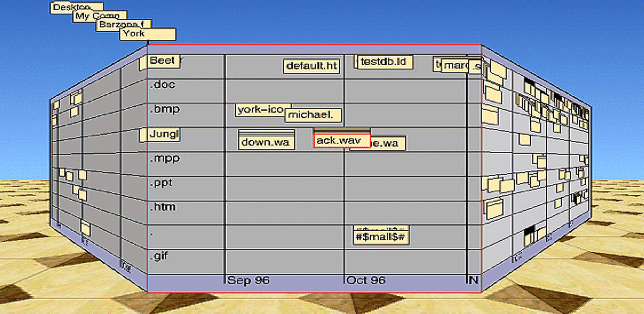 - Vertical dimension can be used for representing layered data (ie. type of file)