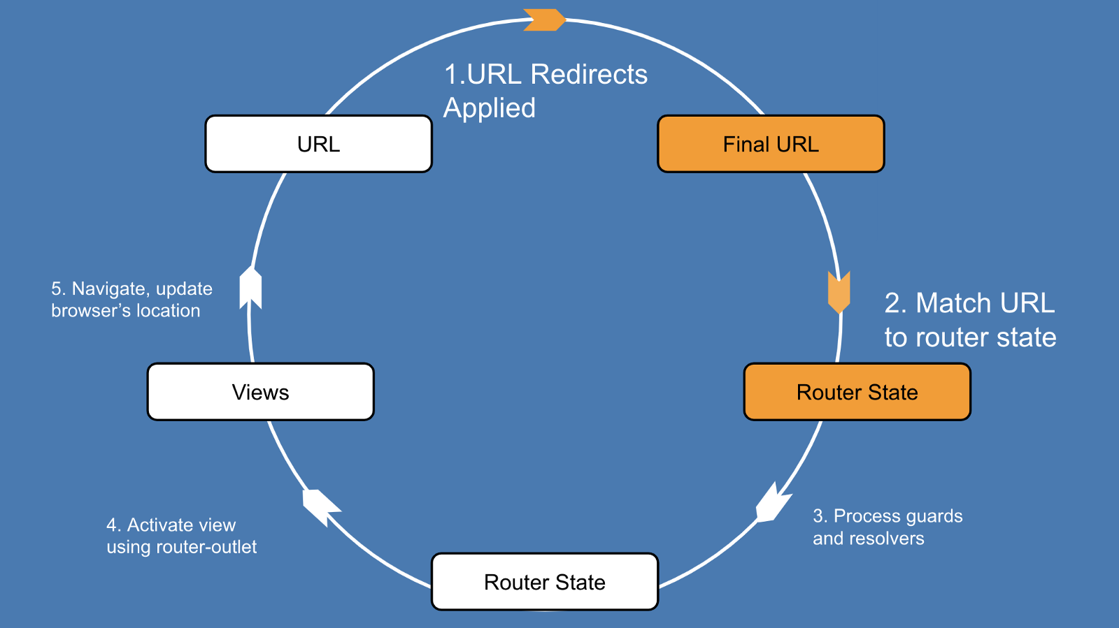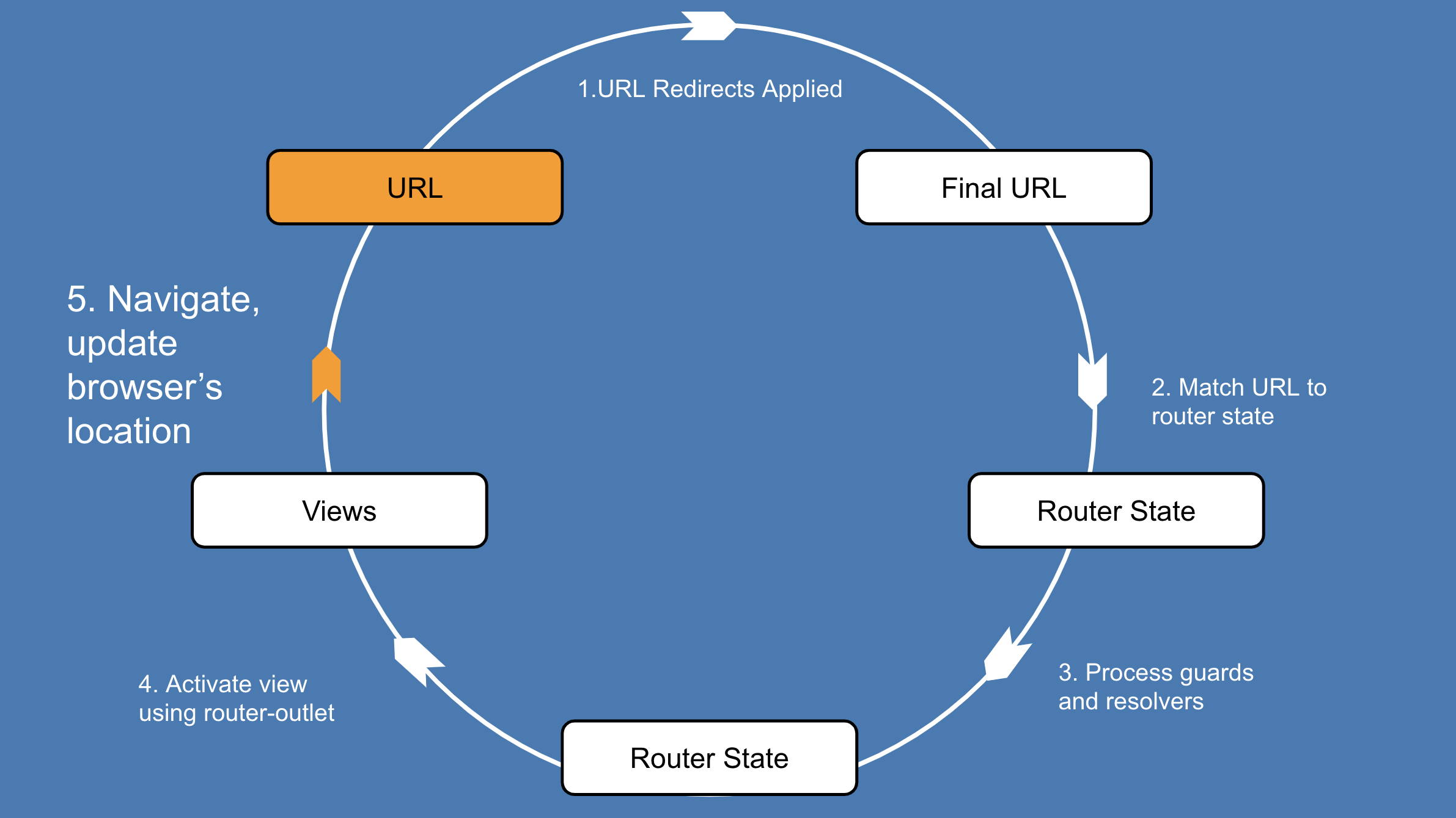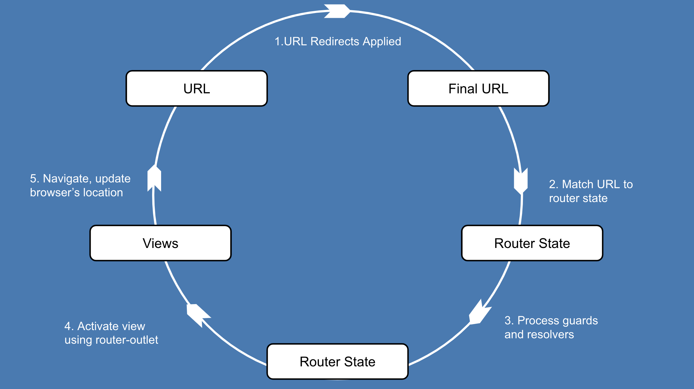 Whenever the router detects a click on a router link directive, it starts the navigation cycle. There are imperative means of starting a navigation as well, such as the Router Service’s navigate and navigateByUrl methods.