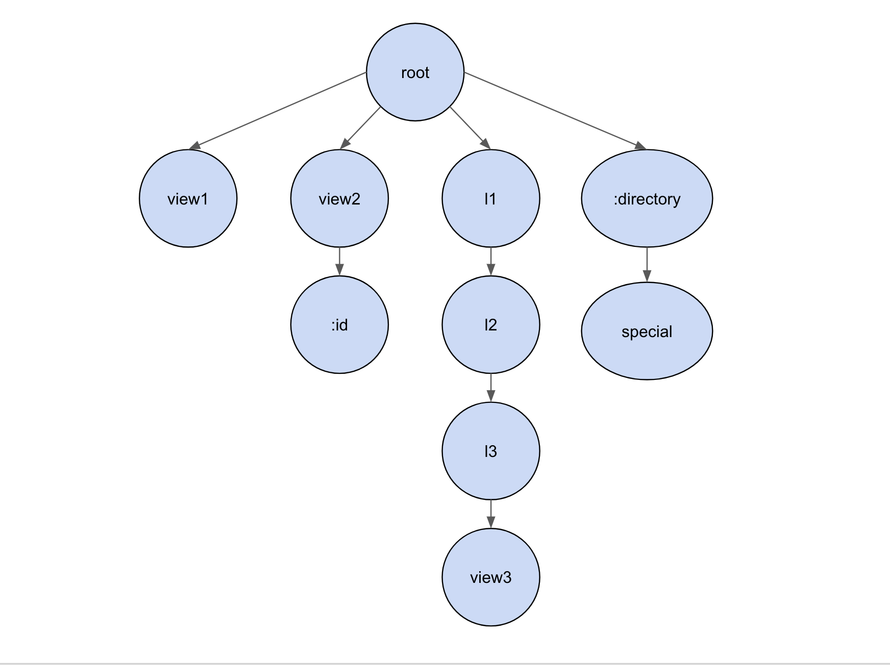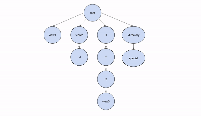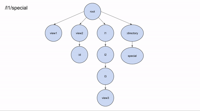 Sometimes, the router will have to backtrack when matching. For instance, consider the path l1/special. In this case: