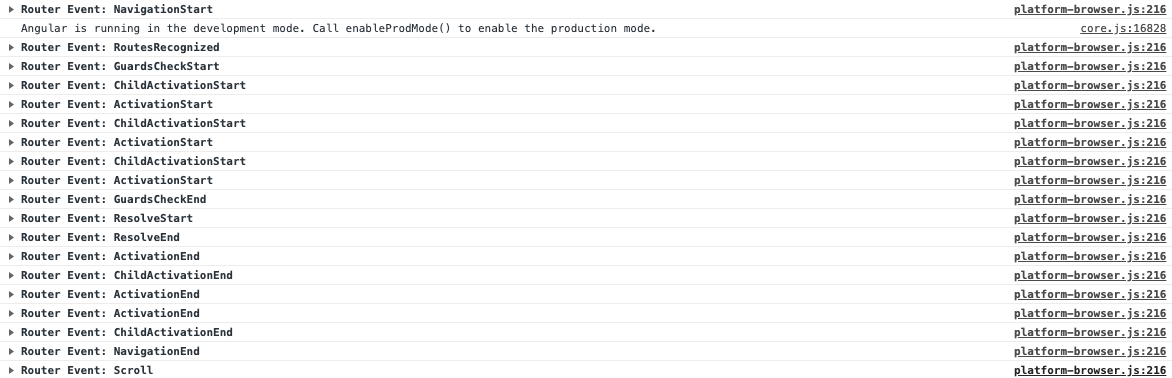 A great way to see the navigation cycle is by subscribing to the Router service’s events observable: