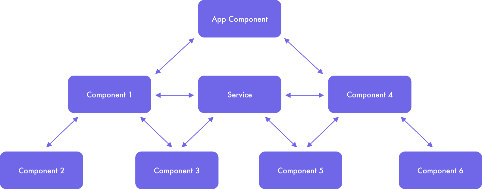 However, such approach is handy only within a very simple application and as soon as your application’s architecture becomes more complex or you just need to share data between separate modules/components through Angular services, it becomes useless and painful