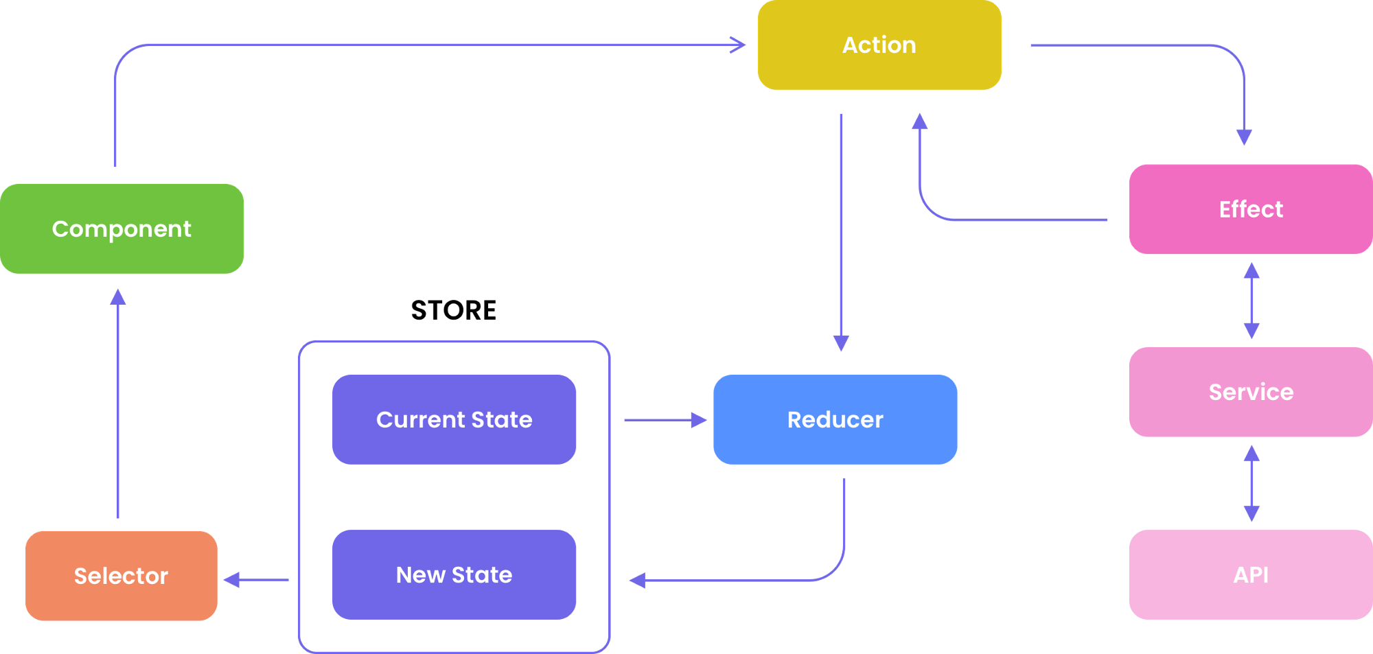 The Store’s select method knows how to get the current State via Selector and returns stream, which emits values whenever State changes that allow the component to be informed and receive the latest version of the data from the Store. In this way, we can make no doubt that data flow is explicit and predictable because it’s always coming from one source.