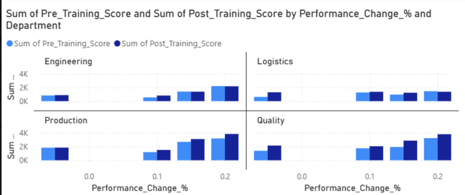 How does employee performance change before and after completing upskilling programs?