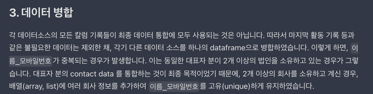 - 10년간 쌓인, 4개 데이터 소스로부터 얻어진 10,000 여명의 과거 고객 데이터 중복, 누락, 병합 정리
