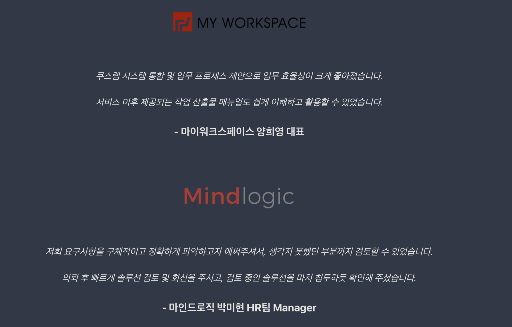 더불어 쿠스랩에서 작업된 내용에 한해, 이후 의뢰하신 업체/담당자의 질문이 있을 경우 적극 소통, 답변해 드립니다.