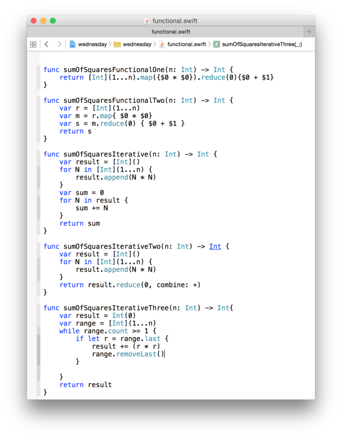 let sqr = {(n: Int) -> Int in return n * n } // == func sqr(n: Int) -> Int { return n * n }