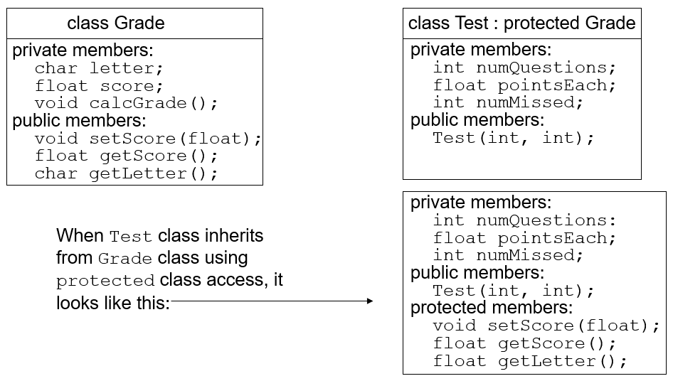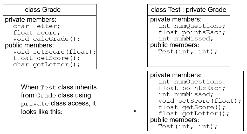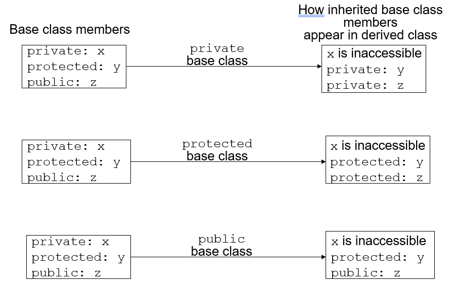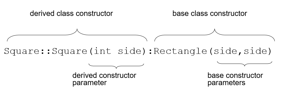 - To inherit off classes in C++, we use "class DerivedClass: public BaseClass"