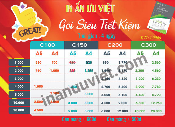Bạn có thể yêu cầu bao nhiêu báo giá tùy thích mà không cảm thấy phiền phức. Tuy nhiên, với các dịch vụ in ấn tại địa phương, điều này sẽ không cần thiết vì nhân viên sẽ lắng nghe bạn và hướng dẫn bạn giải pháp phù hợp nhất cho dự án và nhu cầu của bạn.