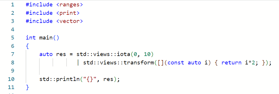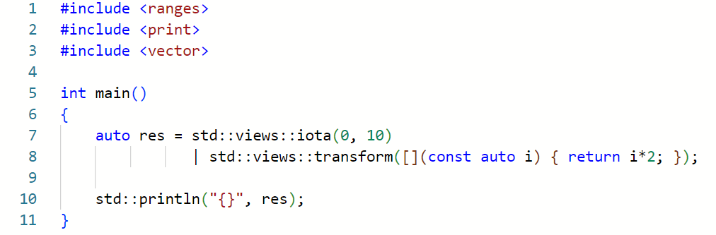 auto res = std::views::iota(0, 10)