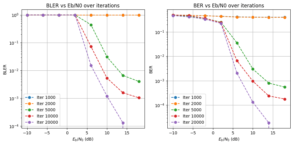 Also, when running the eval loop, the eval stopped at ebno=-10, because it satisfied the low error rate threshold, which was met for other configs only at ebno=10-14