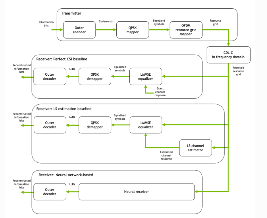 - This is an identical configuration as above, just without the demapper. The Nural receiver is expected to produce the LLRs directly.