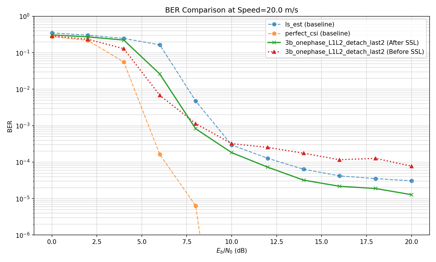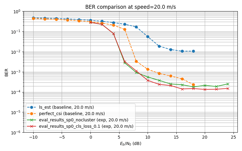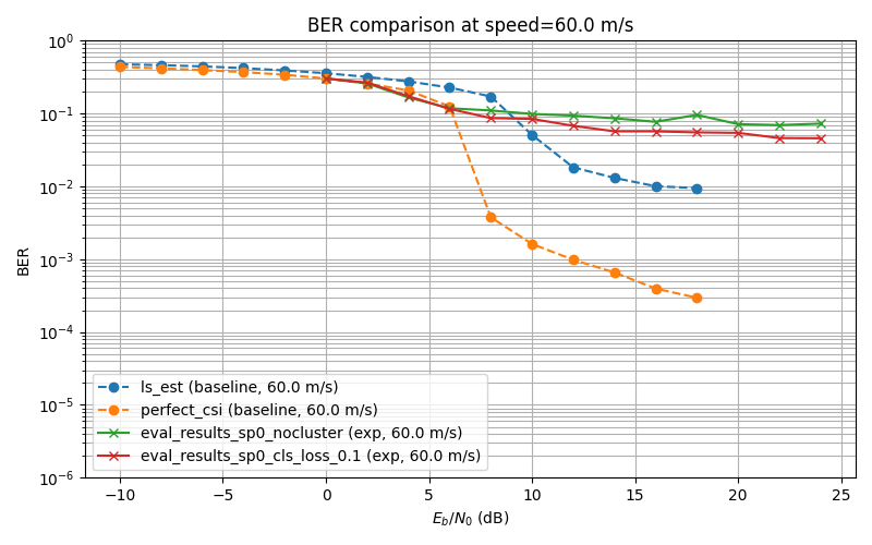 Reason for discrepancy in previous plots: The model's ber and baselines ber were evaluated with different step,s and the plotting function did not take into account that. Now I have updated the plotting function and am running all evaluations from a single config file, so that evaluations all share the same parameters