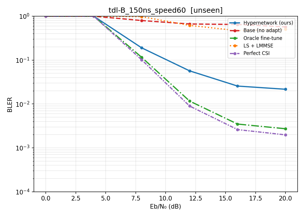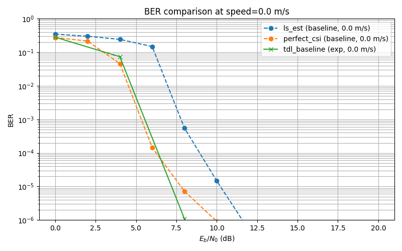 Baselines: Baselines are Perfect CSI, where there is no estimation at the receiver's side, and perfect information is available, and LS Estimation, which is a baseline from Sionna's tutorial that deepOFDM work also uses.