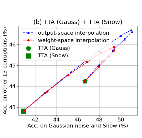 Example from: Kim B, Ahn C, Baddar WJ, Kim K, Lee H, Ahn S, Han S, Suh S, Yang E. Test-time ensemble via linear mode connectivity: A path to better adaptation. InThe Thirteenth International Conference on Learning Representations 2025.