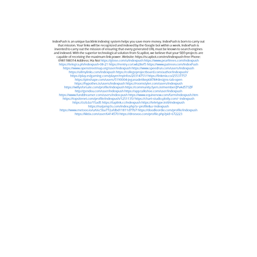 Website: https://scapbot.com/en/indexpush-free IndexPush is an unique backlink indexing tool helps you save more money. IndexPush is invented to carry out that mission. Your links will be recognized and indexed by the Google bot within a week. IndexP