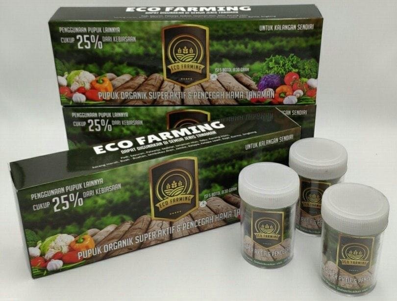 Pupuk Organik Eco Farming 1 botol isi 30 gr - eco racing Harga tertera utk 1 botol isi 30gr yaa... Manfaat Eco Farming : 1.Menyuburkan Tanah atau menggemburkannya. 2.Membuat unsur hara yg belum tersedia dlm tanah menjadi tersedia dgn berbagai proses penguraian 3.Mengaktifkan mikroorganisme dlm tanah sehingga tanah subur 4.Menetralkan PH atau keasaman tanah... 5.Menambah unsur hara Pada pengaplikasian pupuk organik ketersediaan unsur hara tidak bisa langsung di serap tanaman.... tapi butuh proses.... Kandungan Pupuk Eco Farming Unsur hara makro yang terdiri dari (N,P,K) Unsur hara sekunder (S, Ca,Mg) Unsur hara mikro ( Cl,mm,Fe,Cu,Zn,B,Mo) *ECO FARMING* Campurkan dg air dahulu, 1 tube plus 1 liter air utk menjadi biang.... setelah itu ambil 40-50 ml pupuk campurkan dg 1 handsplayer isi 17 liter🙏 Berarti 1 tube jadinya 1000 ml 50 ml diberikan 1 hesflayer 17 ltr / satu tangki. 1 tube bs 20 tangki hesflayer. 1 ha sawah hanya butuh 13 atau 14 tangki. Per satu kali aplikasi . Penggunaan pupuk cukup 25 dari kebiasaan penggunaan pupuk. Dahsyaaat Cara Pakai Eco Farming mulai dari 5 hari sebelum tanam dst dengan jumlah tertera pd kolom dibawahnya. Cara pakai, 1 tube/tablet diencerkan/dilarutkan dgn 1 liter air bersih minimal 15 menit sebelum pemakaian. Air larutan inilah yg kemudian menjadi 1 L pupuk organik cair. Jika belum diaplikasikan, simpan dalam kemasan yg tertutup. Pengaplikasiannya, 20-30 CC dilarutkan dengan 15 L air atau 1 tangki. Semprotkan pada tanaman sesuai dgn jadwal yg ada pada tabel diatas. Semoga bermanfaat. #ecofarming