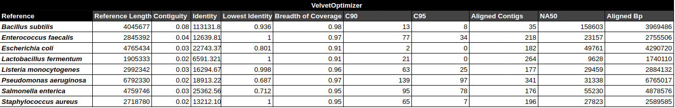 Contig Phred Quality Score per Reference for each Assembler