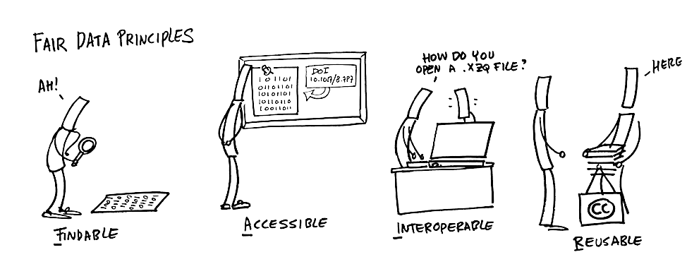 Findable: The first step in (re)using data is to find them! Descriptive metadata (information about the data such as keywords) are essential.