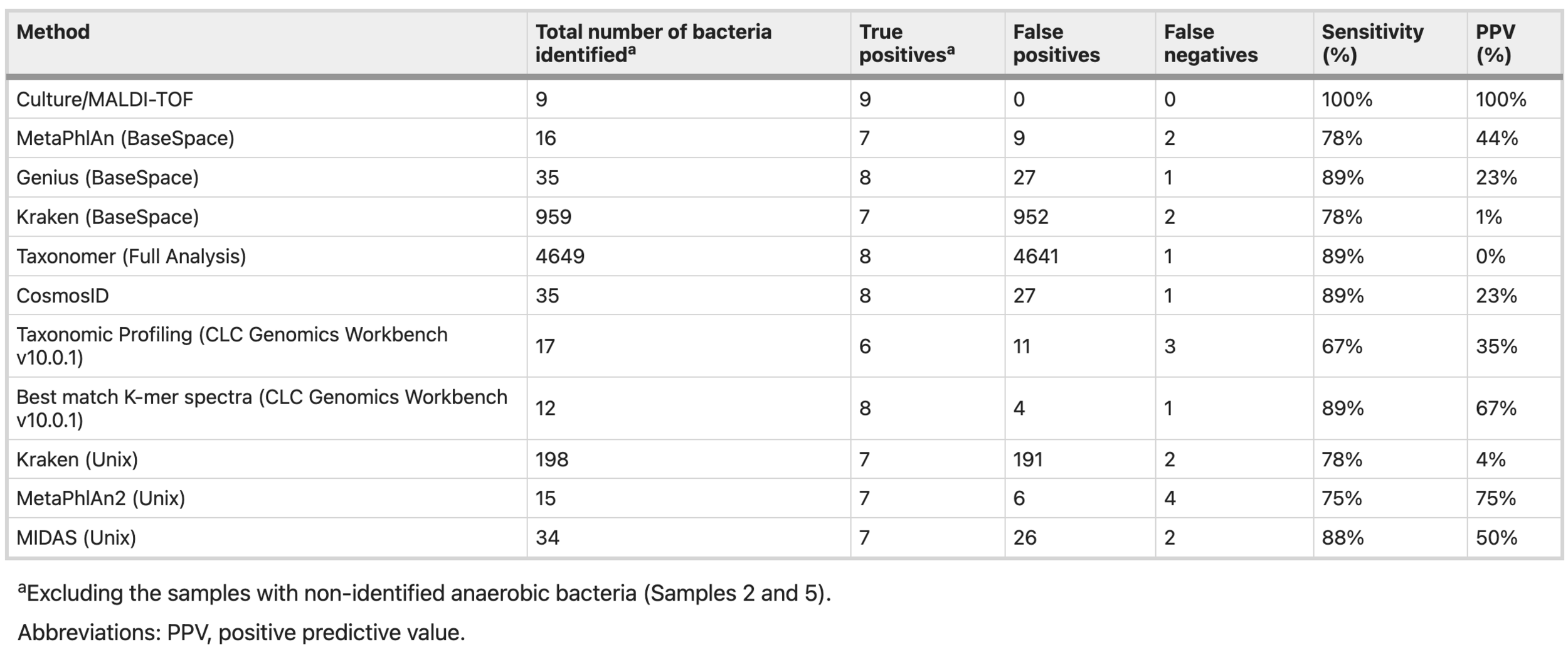 Lack of reproducibility | Highlights the potential and the limitations of shotgun metagenomics as a diagnostic tool.