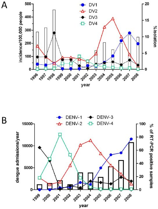 Sequential infection increases the risk of a severe form of the infection - dengue hemorrhagic fever.